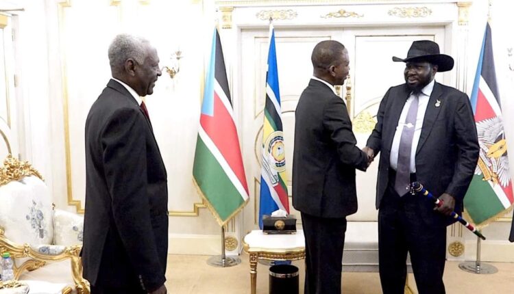 إلتقى رئيس جمهورية جنوب السودان الفريق أول #سلفاكيرميارديت بالقصر الرئاسي بجوبا اليوم، عضو مجلس السيادة الإنتقالي نائب القائد العام للقوات المسلحة الفريق أول ركن #شمسالدين_كباشي.