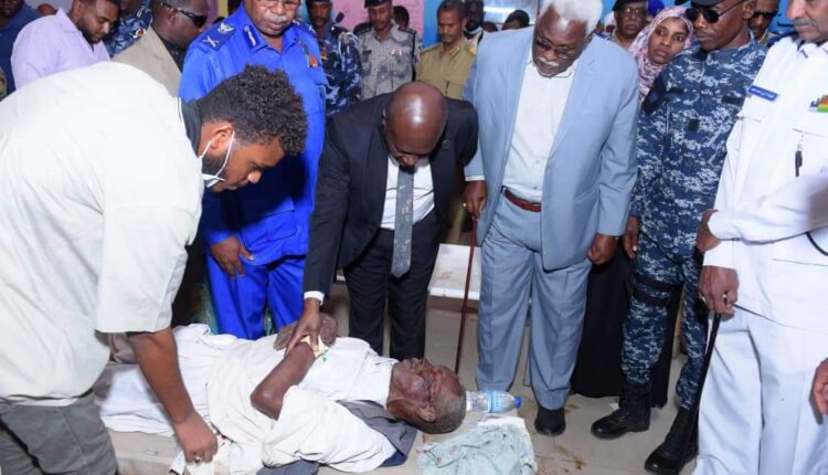 وزير الداخلية المكلف اطمأن خلال زيارته الميدانية رفقة دكتور محمد البدوي عبدالماجد والي الولاية ووزيرة الصحة بالولاية دكتورة امل المجذوب علي واللواء شرطة مبارك الزين مدير دائرة المرور السريع علي احوال المصابين والجرحي و مراحل علاجهم داخل المستشفي