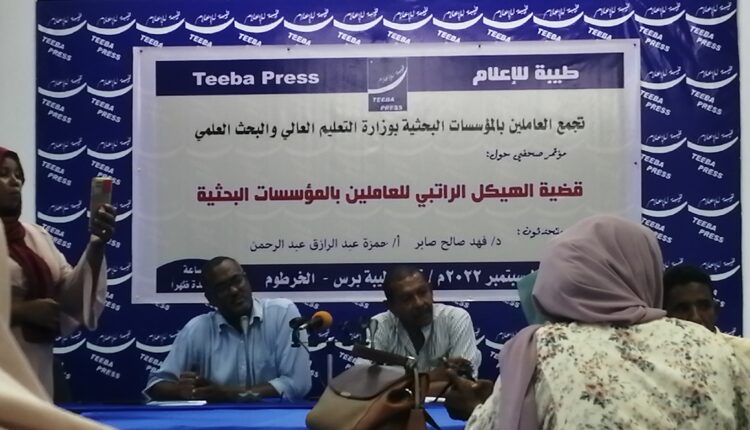 واكد الدكتور حمزة عبد الرازق عبدالرحمن اليوم خلال المؤتمر الصحفي بطيبة برس ان مركز البحوث للبحث العلمي تم تاسيسة للنهوض والتنمية في السودان و الريادة الاكاديمية وأشار إلى أهمية البحث العلمي في حل مشاكل البلاد وقال حمزة أن التدهور في المراكز البحثية الذي حدث نتج من شح الامكانيات بالدولة والدور الكبير الذي قامت به المراكز بالصورة المثلى في تقديم الخدمة وأبان أن هنالك مشاكل استراتيجية في المرتبات وكيفية توفير الاحتياجات للباحثين إضافة إلى الضائقة المعيشية واضاف قائلا بدأت المطالبة بتحسين الأجور مسبقآ و بالاهتمام بالباحث وقال أنهم قدمو في عام ٢٠١٩م مذكرة بتحسين الأجور والرواتب و تمت الاستجابة في عهد حمدوك وفق القرار ٥٦٦ وأوضح أن نص القرار يتم فيه تحسين أجور الباحثين في أجهزة الدولة ثم تأكيد القرار رقم ٩٠ الصادر وكان واضحآ بعد صدور اجازة هيكلة بمبلغ ٨٠ مليار جنيه لمؤسسات تابعة للتعليم العالي تشمل أعضاء هيئة التدريس وأشار إلى عدم شمول القرار ولم ينعكس على المرتبات و لم يستلم الباحثين بتعديل الجديد داعياً المراكز البحثية أن تتحد معهم ممثلة في الكوادر من العمال والتقنيين في الاستجابة لمطالبهم اسوه بالباحثين في الجامعات الحكومية لافتاً إلى مخاطبة مجلس الوزراء وأشاد بموقف مدراء الجامعات لوقفتهم مع العاملين مؤكدين أن القرار الذي خرج بتأكيد القرار ٩٠ والذي أنصف الباحثين ولكن إلى الآن لم تتعدل الرواتب مشيرا إلى قولهم انها تحت الإجراءات وأشار إلى إنهم سيواصلون في مطالب تحسين الوضع والمرتبات بالوسائل المشروعة .