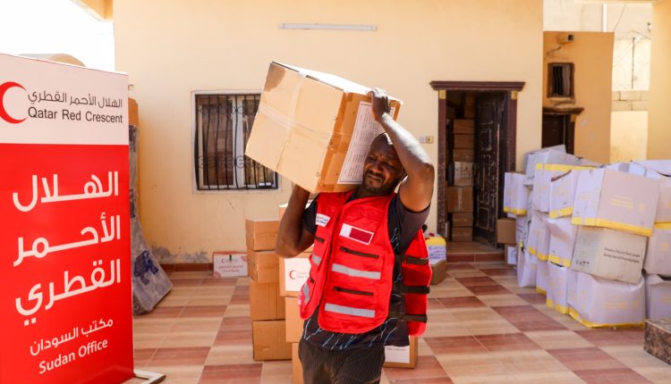الهلال الأحمر القطري : يقدم 90 سلة غذائية للصحفيين النازحين ببورتسودان