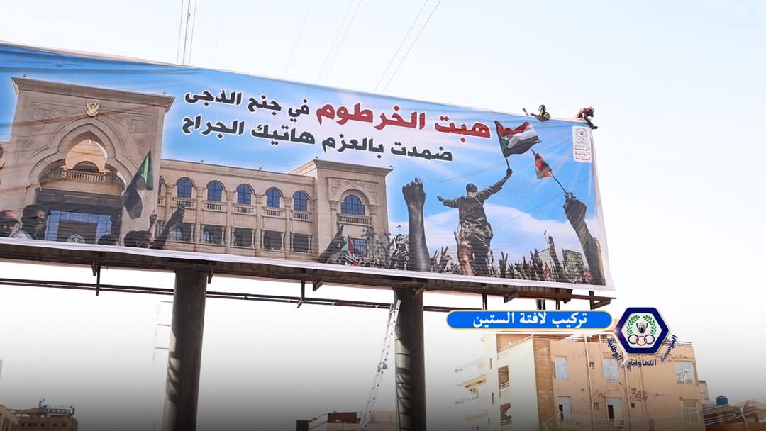 في لفته بارعه وضعت المؤسسة التعاونية الوطنية عبارة “هبت الخرطوم في جنح الدجى .. ضمدت بالعزم هاتيك الجراح” في لوحة إعلانية جديدة وهي تعتبر اللافتة الثانيه في شارع ال60 بالخرطوم
