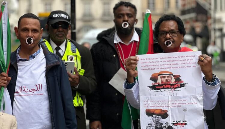 سودانيون يتظاهرون في لندن احتجاجا على انعقاد مؤتمر لندن وانتهاكات المليشيا وداعميها