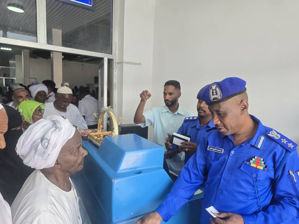 الإدارة العامة للجوازات والهجرة بمطار بورتسودان الدولي تودع الفوج الأول من حجاج بيت الله الحرام المسافرين جوًا.