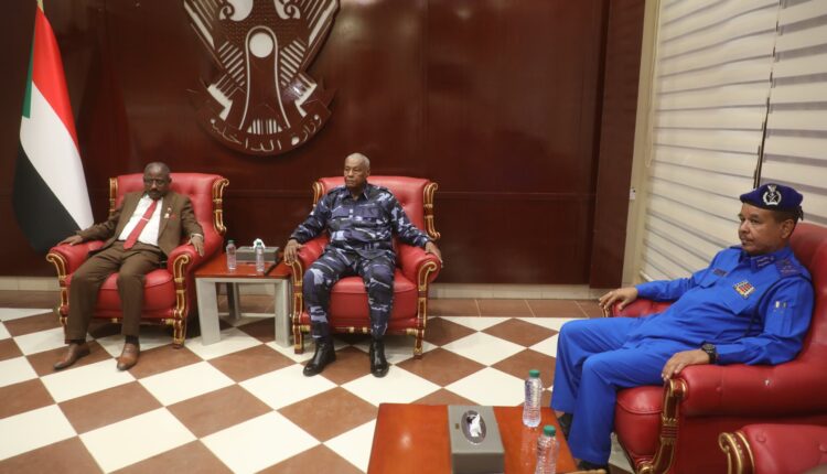 التقى الفريق شرطة (حقوقى) بابكر سمره مصطفى وزير الداخلية بمكتبه اليوم الدكتور عبدالله درف وزير العدل بحضور الفريق شرطة محمد إبراهيم عوض الله نائب مدير عام قوات الشرطة المفتش العام والفريق شرطة عبدالمنعم محمد عبدالقيوم رئيس هيئة الشؤون المالية والفريق شرطة ياسر عمر ابوزيد مدير عام قوات السجون والفريق شرطة (حقوقى) د/إبراهيم أحمد شمين رئيس هيئة الشؤون الإدارية واللواء شرطة امير الطيب الحاج مدير الادارة العامة للشؤون القانونية وقد أكد السيد اهمية التنسيق والتعاون بين كافة مكونات اجهزة انفاذ القانون من الاجهزة العدليةوالقضائية والشرطية مثمنا اهتمام السيد وزير العدل بكافة القضايا القانونية الخاصة بعمل الشرطة حتى تضطلع بمهامها وواجباتها القانونية مبينا انه تم استعراض جهود الوزارة فيما يختص بالمنتظرين بالأقسام والسجون حتى اكنمال إجراءات محاكمتهم ويضمن كافة حقوقهم القانونية