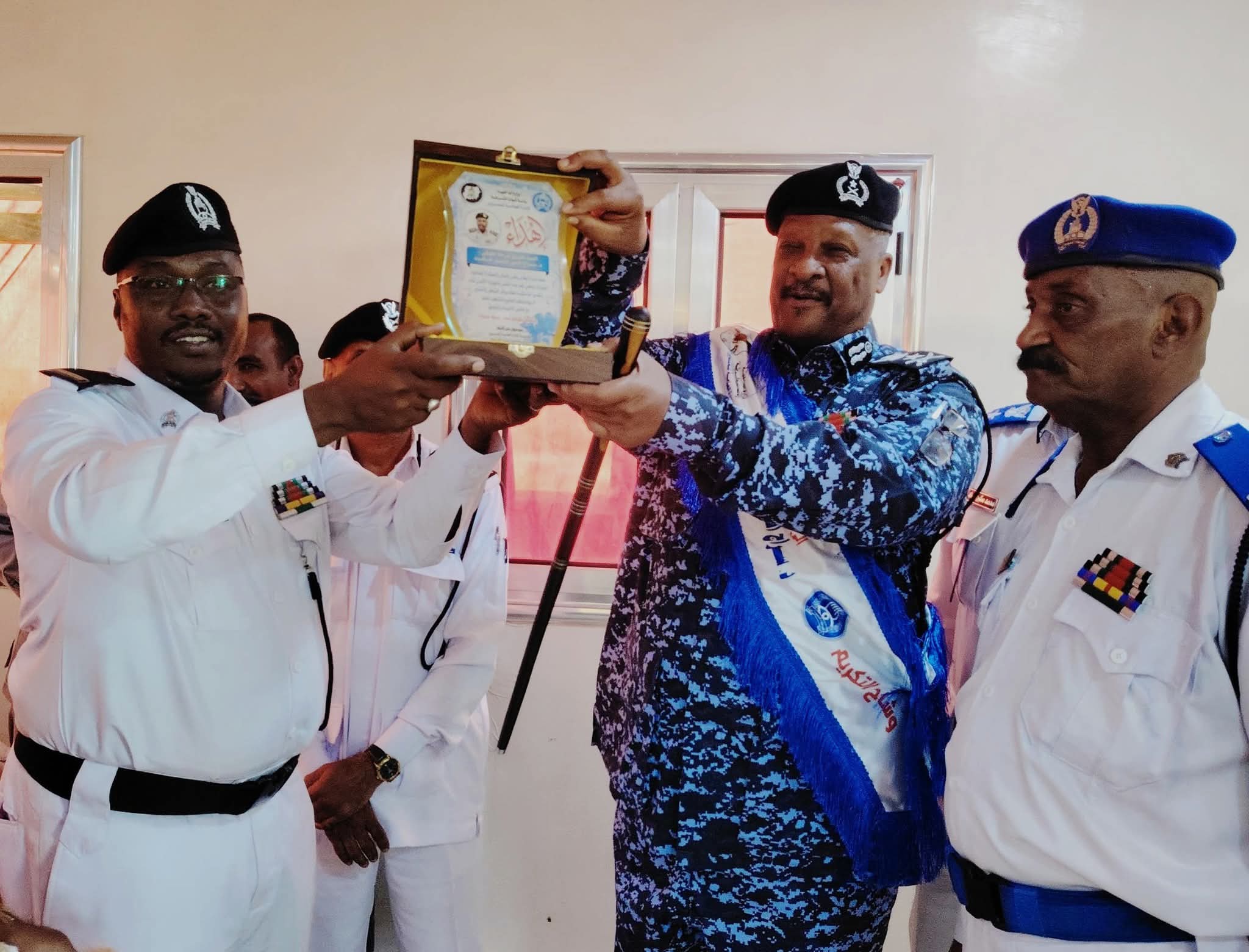إكتملت اليوم بمبانى رئاسة الإدارة العامة للمرور عملية التسليم والتسلم بين الفريق شرطة (حقوقي) د/ سراج الدين منصور خالد مدير الإدارة العامة للمرور السابق واللواء شرطة /حاتم محمود منصور عبدالله مدير الإدارة العامة للمرور الحالى بحضور مدراء الدوائر والادارات الفريق شرطة (حقوقي)/د. سراج الدين منصور خالد اوضح أن الشرطة ظلت تعمل بمؤسسية ولاتتأثر بذهاب شخص ودولاب العمل الشرطى منظم ومرتب وكل من يأتى قادرا على تحمل المسؤولية لانهم أصحاب خبرات وتجارب ستعبر بالشرطة الى بر الأمان وتحقق العدل والأمن واعلي درجات السلامة المرورية ، مشيدا بالجهود التي بذلها منسوبي المرور خلال فترة قيادته في تحسين الاداء وتسهيل إجراءات خدمات المرور بالاضافة لانتشارهم الواسع لتقديم النصح والإرشاد لجميع مستخدمي الطريق. اللواء شرطة / حاتم محمود أوضح أن عملية التسليم والتسلم إرث شرطى راسخ وتواصل أجيال ، مشيدا بجهود الفريق سراج الدين فى وضع أسس العمل الإداري والفني موكدا إكتمال مطلوباتها لانها اتت من قائد صاحب مواصفات وخبرات أسهم كثيرأ فى تطوير العمل المروري مؤكدا أن هذه الإنجازات تمثل نموذجا يحتذى به لتحسين الخدمة للمواطنين و خلال إجراءات التسليم والتسلم تم تكريم الفريق شرطة (حقوقي)د. سراج الدين منصور خالد