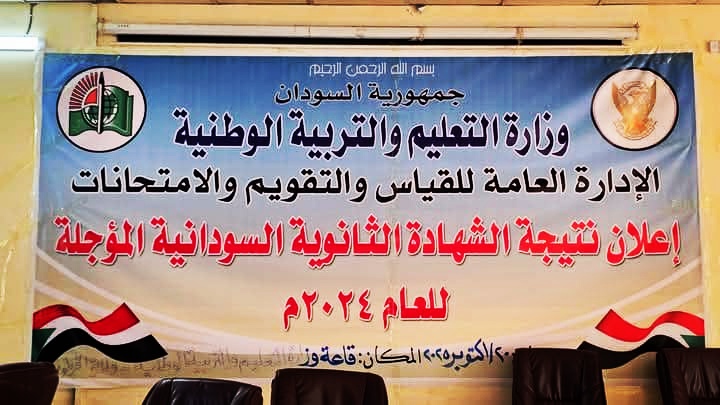أعلنت وزارة التربية والتعليم ، اليوم الإثنين 20 أكتوبر 2025م نتيجة إمتحانات الشهادة السودانية المؤجلة للعام 2025م، بنسبة نجاح بلغت 68,5 للمستوى الأكاديمي وكان ذلك وسط حضور جماهيري كبير في ظل الظروف الإستثنائية التي تمر بها البلاد