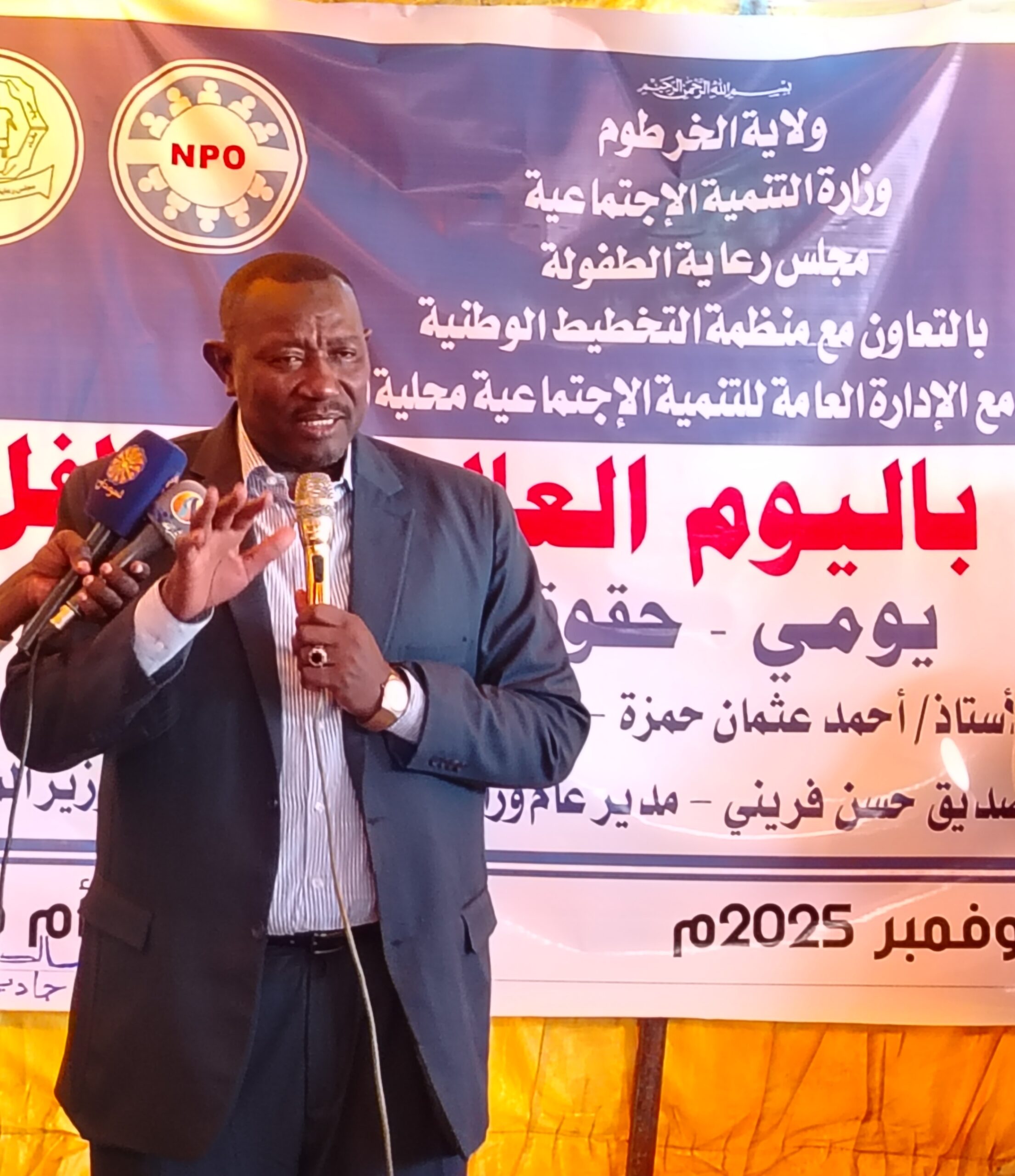 من جانبه أكد وزير التنمية الاجتماعية بولاية الخرطوم، صديق فريني، في بيانه خلال الاحتفال، أن اليوم العالمي للطفل الذي يوافق 20 نوفمبر من كل عام يمثل مناسبة للتأكيد على حقوق الأطفال الأساسية دون تمييز، وتعزيز مشاركتهم الفاعلة في المجتمع.