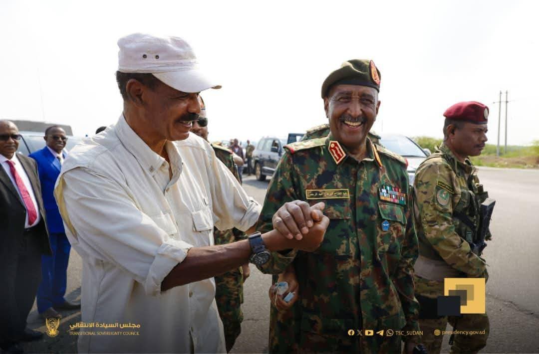 ​وصل فخامة الرئيس الإريتري، السيد أسياس أفورقي، إلى البلاد اليوم في زيارة رسمية.​ وكان في استقباله بمدينة بورتسودان رئيس مجلس السيادة الانتقالي، القائد العام للقوات المسلحة، الفريق أول الركن عبد الفتاح البرهان.