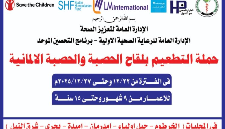 إعتماد 54 مركزا صحيا لتلقي لقاح الحصبة والحصبة الألمانية بمحلية الخرطوم الاثنين المقبل