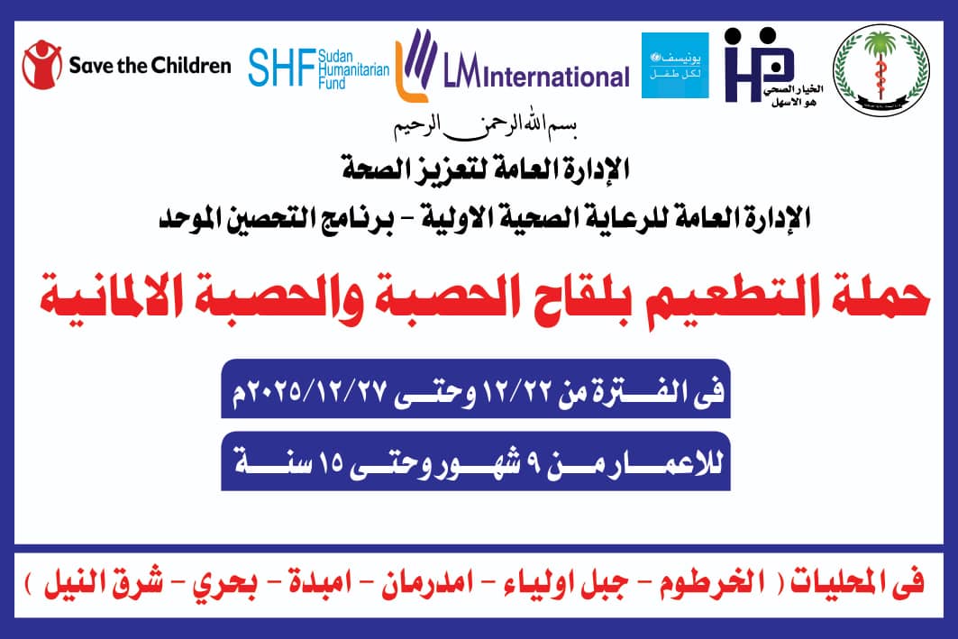 أعلنت محلية الخرطوم عن بدء الحملة القومية للاستجابة والتطعيم لوباء الحصبة والحصبة الألمانية بالمحلية في الفترة من ٢٢ ديسمبر الجاري وحتى ٢٧ من الشهر بالتنسيق مع الإدارة العامة لتعزيز الصحة بوزارة الصحة ولاية الخرطوم حيث تستهدف الحملة بالتطعيم الاثنين المقبل الفئة العمرية من ٩ شهور وحتى ١٥ عاما، وأكدت مدير إدارة تعزيز الصحة بالإدارة العامة للنظام الصحي بمحلية الخرطوم اسماء احمد نور الهدى بأن الحملة تستهدف جميع الوحدات الإدارية بالمحلية عبر ٢٧ مركز صحي ثابت لتقديم الخدمة بجانب ٢٧ مركز متجول بجانب ١٣٥ فرق تطعيم مؤقتة متجولة، مشيرة بأن الحملة تسبقها حملات اعلامية توعوية تنبه بخطورة الوباء، إلى ذلك أكدت اسماء لفعالية اللقاح وأمن ومحفوظ في سلسلة تبريد جيدة، لافته لفعاليته طوال العمر شرطا إعطاء جرعات تنشيطية خلال فترات متباعدة تحدد وفقا للحملات المعلنة، مشيرة الي تلقى ٥٤٣ فرد من فرق التطعيم لجرعات تدريبية عالية في كيفية إعطاء اللقاح بصورة آمنة وسليمة فضلا عن قيامهم بحصر الفئات العمرية المحددة، إلى ذلك نبهت اسماء الي خطورة وباء الحصبة والذي قد يؤدي إلى حالات وفاة في حالة عدم التطعيم إضافة إلى المضاعفات الخطرة للمرض القاتل، موجهة جميع الأسر بضرورة الاستجابة لحملة التطعيم خلال الفترة المعلنة واخضاع أبنائهم لتلقي جرعات التطعيم حسب الفئة العمرية المحددة.يشار بأن الحملة ستدشن الاثنين المقبل ٢٢ ديسمبر الجاري بمركز صحي عمر بن الخطاب باركويت مربع ٤٤. ==============مصدرالخبر/ إعلام محلية الخرطوم.. ٢٠ ديسمبر ٢٠٢٥م