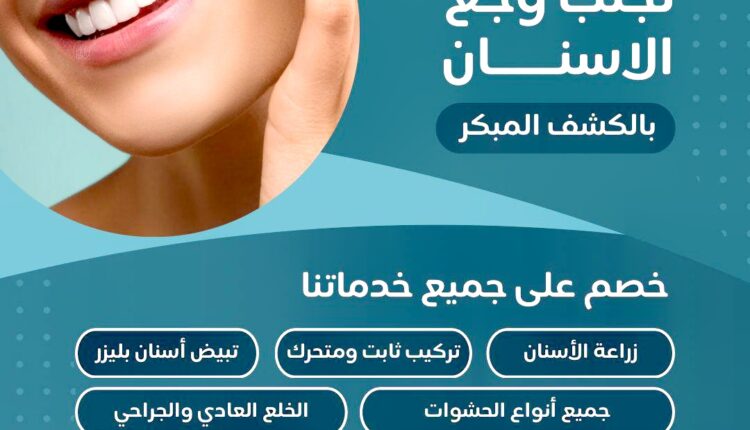 تعلن عيادة نسمة لطب الأسنان عنكشف مجاني وتخفيضات في جميع خدماتها (زراعة الأسنان، تركيب ثابت ومتحرك، تبييض أسنان، جميع أنواع الحشوات،الخلع العادي والجراحي)