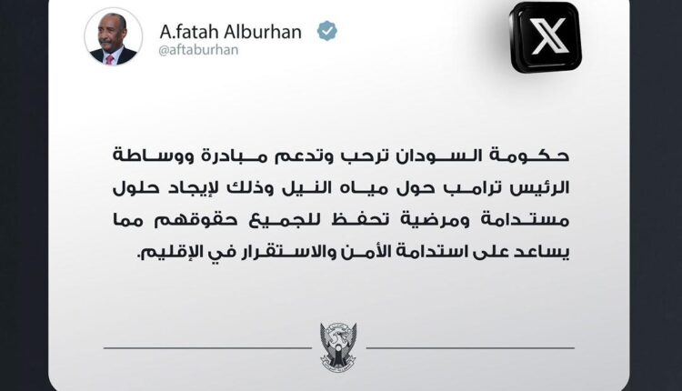 رئيس مجلس السيادة الفريق أول ركن ركن عبد الفتاح البرهان في تغريدة على منصة إكس : حكومة السودان ترحب وتدعم مبادرة ووساطة الرئيس ترامب*