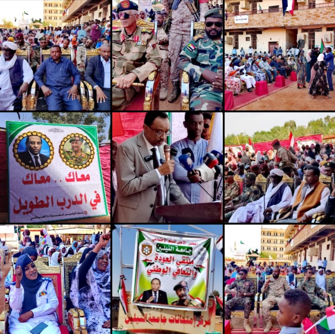 نظمت جامعة النيلين بالتعاون مع المجلس الأعلى للسلم الإجتماعي حفل بعنوان “يوم النيلين للعودة والتعافي الوطني” بتشريف وزير التعليم العالي والبحث العلمي بروفيسور أحمد مضوي موسى ووسط حضور حافل من المسئولين والقيادات العليا من القوات المسلحة وحضور العقيد فاطمة علي ممثل مرور ولاية الخرطوم