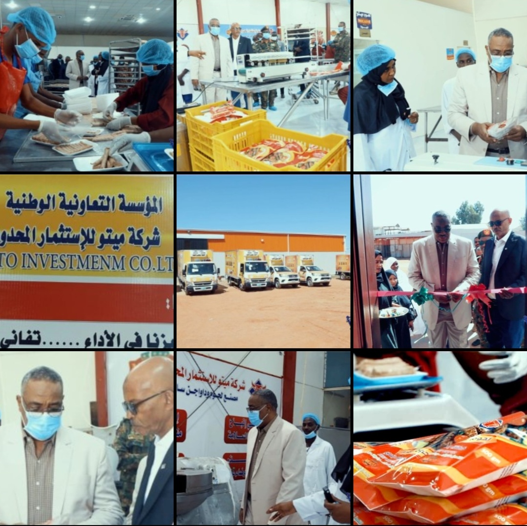 إفتتح السيد المدير العام للمؤسسة التعاونية الوطنية سعادة اللواء محاسب عادل العبيد عبدالرحيم مصنع ميتو للحوم والدواجن بعد أن تم تأهيله بواسطة المؤسسة التعاونية ، في لفتة بارعه تدل على تلاحم القوات المسلحة مع المواطنين في ظل الظروف الراهنة ويأتي هذا الافتتاح في إطار إعادة الإعمار ودفع عجلة الإنتاج بالبلاد وتخفيف أعباء المعيشه على المواطنين. وقد تحرك منسوبي المؤسسة التعاونية الوطنية من ضباط وأفراد برفقة المدير العام مشاركين في هذا الإفتتاح الضخم.