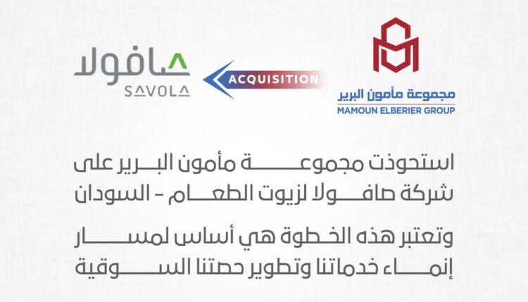 أعلنت مجموعة مأمون البرير اليوم السبت إتمام صفقة الاستحواذ الكامل على شركة صافولا لزيوت الطعام السودان، التابعة لمجموعة صافولا السعودية، عبر إحدى شركاتها الصناعية،وبموجب الاتفاق تنتقل ملكية الشركة بنسبة 100% إلى مجموعة مأمون البرير، لتشمل الصفقة جميع الأصول والاستثمارات داخل السودان، بما في ذلك المصانع والمنشآت الصناعية والاستثمارات الزراعية وسلاسل الإمداد والتوزيع، إضافة إلى العلامات التجارية وحقوق الملكية الفكرية المرتبطة بالشركة داخل البلاد.