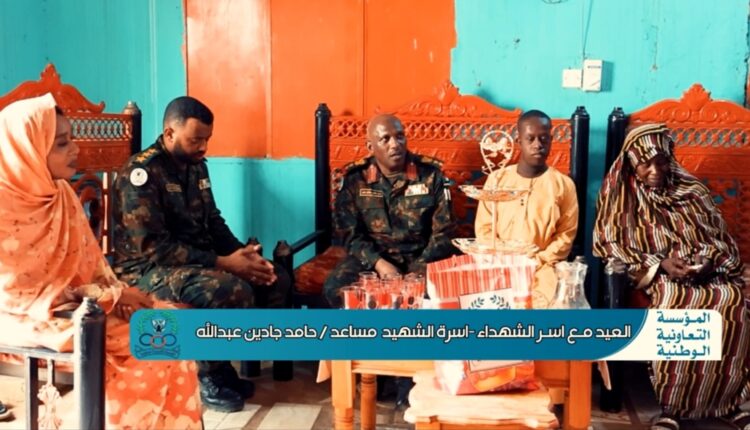 تفقدت المؤسسة التعاونية الوطنية متمثلة في مدير الإسناد المدني العقيد ركن/ مزمل محجوب والنقيب حسام الدين أحمد الحاج عدد من أسر شهداء معركة الكرامة وذلك في موقف إنساني يدل على تلاحم القوات المسلحة مع الأسر التي فقدت أبنائها في ظل الحرب، وأكد العقيد ركن أنهم توجهوا لأسر شهداء معركة الكرامة بتوجيه من سعادة اللواء محاسب عادل العبيد عبدالرحيم المدير العام موصلا تحايا القائد الأعلى للقوات المسلحة الفريق أول الركن عبدالفتاح البرهان، وأضاف أنهم تحركوا في أول وثاني أيام عيد الفطر المبارك وتم إستقبالهم بحفاوة والحزن يخيم وجوههم..