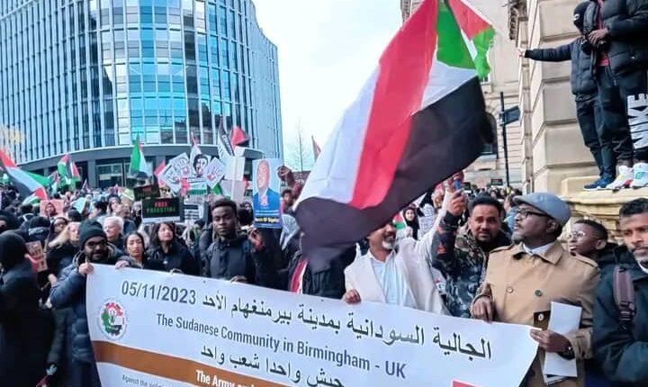 الجالية السودانية في “مدينة ببرمنغهام البريطانية” تخرج منددة بجرائم الدعم السريع