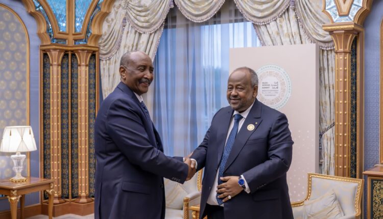 إلتقى رئيس مجلس السيادة الإنتقالي الفريق أول ركن *عبدالفتاح البرهان* اليوم بالعاصمة السعودية الرياض، الرئيس الجيبوتي إسماعيل عمر قيله.وذلك على هامش مشاركته في أعمال القمة السعوديه الإفريقية التي بدأت فعالياتها اليوم. وأطلع رئيس مجلس السيادة، الرئيس الجيبوتي على الأوضاع في السودان على خلفية التمرد الذي قادته مليشيا الدعم السريع الإرهابية ضد الدولة، وإرتكابها لفظائع إنسانية ضد المدنيين مشيرا الى جهود حكومة السودان من أجل معالجة هذه الأزمة من خلال مشاركتها في منبر جدة الذي ترعاه المملكة العربية السعودية والولايات المتحدة الأمريكية بمشاركة الإتحاد الافريقي والإيقاد.من جانبه أكد الرئيس اسماعيل عمر قيله دعم بلاده لكل ما من شأنه إستدامة السلام والأمن والاستقرار في السودان .*