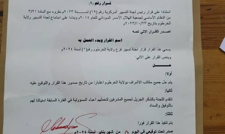 اخبار الهلال الأحمر بولاية الخرطوم يتخذ قرار صارم ضد هؤلاء بواسطة اليمامة برس آخر تحديث يناير 8, 2024 شارك متابعات : اليمامة برس أقر الهلال الأحمر بولاية الخرطوم بحل مكاتب الإشراف على أن يتم تشكيل مكاتب جديدة لإدارة المرحلة المقبلة شارك